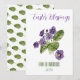 Purple violets from original watercolor floral botanical. Easter Blessings saying. Name place and date. Back of card purple. Traditional style with vibrant colours.