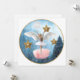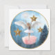 Card with a whimsical image of a young girl with angel wings dancing in a starry winter sky.