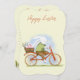Flat Holiday Card "Happy Easter" with a picture of a bunny on a bicycle.