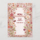 Celebrate with this elegant vintage floral menu featuring a romantic botanical garden design framed by a delicate ornamental arch. Soft blush, peach, and pink florals with subtle greenery and butterfly accents create a timeless, feminine look perfect for classic, garden, or spring bridal showers.