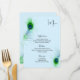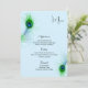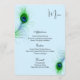 This Menu Card template is shown on the basic paper with a lovely peacock print. Script and standard text in Black.