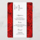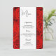 This Menu Card template is shown on the basic paper with a lovely red roses print. Script and standard text in Black.