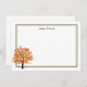 This custom name flat note card is shown with a lovely autumn tree print and has a double border in colours of brown and green.