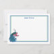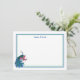 This custom name flat note card is shown with a pretty peacock print and has a double border in colours of blue and green.