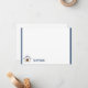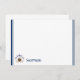 Flat note card is shown in white with a slim navy blue double border trim and has the horoscope sign Sagittarius.