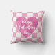 Happy Valentine's Day pillow with pink heart and check pattern element.