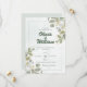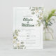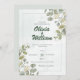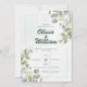 Wedding invitation with a modern elegant green design. In the spirit of nature's timeless beauty, our invitation is adorned with the fresh and fragrant touch of eucalyptus leaves, symbolising the strength and resilience that love brings to life.