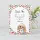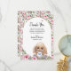 Flat Thank You Baby Shower Card with adorable watercolor roses and cute stuffed bunny.