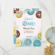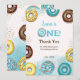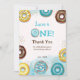 Flat Thank You Card for 1st birthday, decorated with watercolor of sweet, yummy doughnuts.