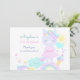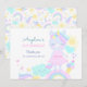 Flat Thank You Card for 3rd birthday with a funny unicorn, which is surrounded by cute pictures of a rainbow, cloud, sun, ice cream...