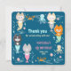 A nautical themed birthday Flat Thank You Card decorated with cute mermaid kittens.