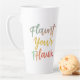 The design features the phrase "Flaunt Your Flaws" in a playful, multi-coloured handwritten style. The colours are bright and cheerful, inviting viewers to embrace their imperfections. The handwritten font adds a personal touch, making the message feel more relatable and empowering. The overall design is simple and impactful, focusing on the core message of self-acceptance and individuality