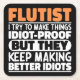 Funny Flautist Sayings "Flautist I Try To Make Things Idiot Proof But They Keep Making Better Idiots". Grab this Funny Flautist design as a funny gifts for an awesome mum, dad or friend.