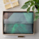 Flawless dark and light brown wood barn under a stunning aurora borealis teal sky tissue paper for gift wrapping supplies and/or decoupage projects.