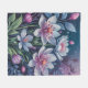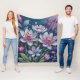 A floral design in shades of pink, blue, green, and ivory covers this lovely fleece blanket.
