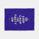Based on the original Keep Calm and ... poster this cream and blue Keep Calm and Party On Fleece Blanket features a custom designed font that matches the original closely.