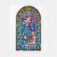 The original artwork is illustrated in water colour and coloured pencil, featuring a stained glass design after Burne Jones.