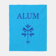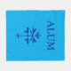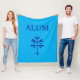 A cosy polyester fleece blanket, with "ALUM" and the solid sapling in Simon's Rock blue.