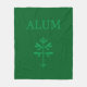 A cosy polyester fleece blanket, with "ALUM" and the solid sapling in Simon's Rock green.