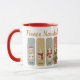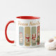 A charming Christmas mug featuring four adorable holiday sheep — from a Santa lamb to a cozy cocoa drinker, a sheep wrapped in lights, and one dressed as a Christmas tree. Soft colors, warm winter details, and a playful “Fleece Navidad” twist make this a perfect gift for sheep lovers and holiday fans.