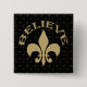 Fleur de Lis Believe Black Gold 15 Cm Square Badge