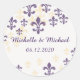 These round stickers feature a trendy yet sophisticated design of cascading Fleur de Lis symbols in a Mardi Gras feeling purple and yellow. Perfect for your New Orleans wedding, save the date and Mardi Gras event correspondence and projects.