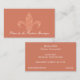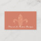 A chic custom business card for a fashion boutique, gift shop or designer. This exclusive design features an elegant Fleur de Lis an original design by Mango Moon Studio set against a coral-coloured background, creating a visually stunning and memorable first impression for your business.