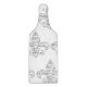 This product features a pattern of several large Fleur de Lis. The black and white Fleur de Lis are filled with vintage French script writing.