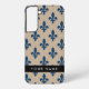 Fleur de Lis, Navy Blue on Beige, Royal, Your Name Samsung Galaxy S22+ Case