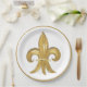 This party plate features a golden fleur de lis in the centre on a bright white background with a golden rim around the edge. Coordinates with the other products in my Much Ado About Nothing Collection.
