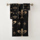 Fleur-de-lis pattern black and gold bath towel set