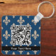 Fleur de Lis Pattern, French, Royal, Cream, Blue Key Ring
