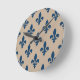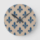 Fleur de Lis Pattern, Royal French Blue on Cream Round Clock