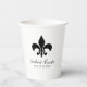 Personalised fleur de lis wedding paper cups customised with first names and wedding date.