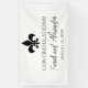 Personalised fleur de lis wedding paper plates ncustomized with first names and wedding date.