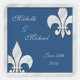 These Fleur de Lis Silver and blue Wedding Stickers will commemorate your special day in style. The stickers feature silver imitation metal border around a Monaco Blue background with a Fleur de Lis symbol in the bottom left and top right. Personalise using the template, or click "customise it" to make changes to the font and text placement. Great for save the date reminders as well.