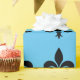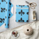 Wrapping paper shown in a blue and black Fleur De Lis print. Customise this item or buy as is.
