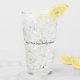 A pint/shaker glass with author Hunter Holmes’s name, ©️logo over flames and his link on the opposite side.