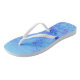 Received these yesterday and as the sun was shining I couldn't wait to get them on! They are very comfortable. I'm a size 5 so I would order the next size up next time but they are fine. The Blue Lagoon design is vibrant and I am thrilled. I've already packed them ready for my Summer Holiday abroad. I've ordered the matching t-shirt so I can't wait for that to arrive. The printing is really high quality. It literally is a work of art on flip flops! Fabulous.