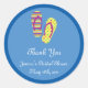 Fun and modern favour sticker. Perfect for a summer or beach theme. Features flip flops in bright colours on a blue background. Add your own wording. Can be customised for a birthday party or similar event. Matching products available in this store.