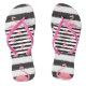 Flip Flops with a pink Flamingo striped Design. Available in Women's, Men's and Children's sizes.