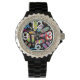 Watch, Rhinestone Black Enamel