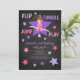 FLIP, TUMBLE, JUMP & PLAY ...Come celebrate with this trendy gymnastics birthday invitation. There's a purple star with an adorable gymnast across the middle doing a split. Personalise with your party information.