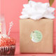 A light-skinned, blue-eyed brunette bride peeks demurely over her shoulder atop a soft green damask patterned background on this sticker. Your customised text wraps around her. Great as envelopes seals, closing favour bags or use in decoration. Available in alternate colours with an assortment of skin/hair/eye colours for the bride. Matching invitations, thank you cards and postage available. Contact me through my store if you prefer a different background.
