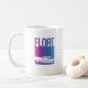 This mug is perfect for pontoon boat owners and fans of pontoon boats. It features the word "FLOAT" spelled out in sunset coloured letters of pink, purple, indigo and blue with a simple illustration of a pontoon boat floating on a lake. This coffee mug makes a great gift. Select the "Customise" option to personalise this mug with your favourite boat owner's name.