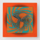 Floating Abstract Design in Orange with Aqua Square Wall Clock