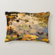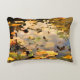 This brilliantly coloured fine art accent pillow features an artistic abstract depiction of autumn leaves floating in a pond. The lovely fall foliage colours include red, orange, yellow, brown, gold and green. White clouds, blue sky and black branches are reflected in the water. All form a lovely impressionistic pattern.