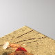 Red-orange autumn leaves float gently above an earth-coloured sandy bottom in this close-up photograph of the autumn shoreline at Handy Point, Cape Cod.
