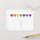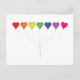 Postcard with the art of Sandy Scharmer. Graphic of 7 rainbow coloured balloon hearts each on a string