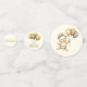 This adorable watercolor design features a sweet little bear floating among the clouds, gently carried by balloons over a peaceful woodland forest. The soft, neutral beige colour palette gives it a rustic yet elegant feel, making it perfect for gender-neutral themes.